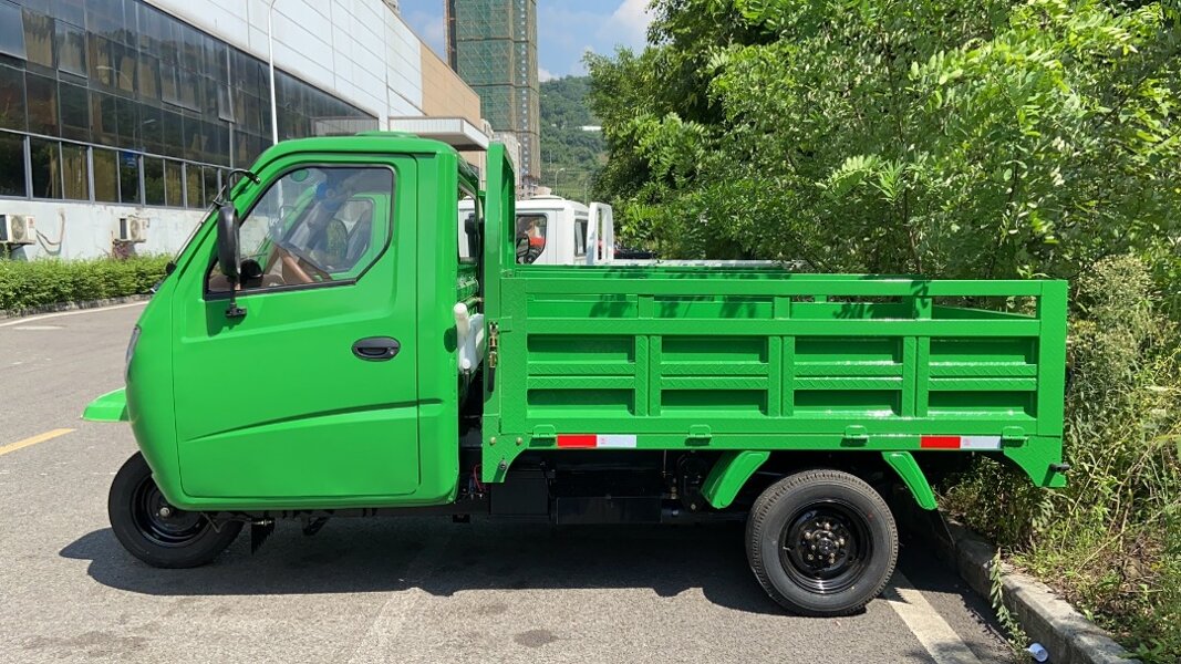 Veicolo trasporto merci, 10 quintali di portata, motore di derivazione automobilistica 1000cc di cilindrata, 5 marce più 5 marce ridotte, bloccaggio differenziale posteriore. Possibile pianale ribaltabile e motore GPL.